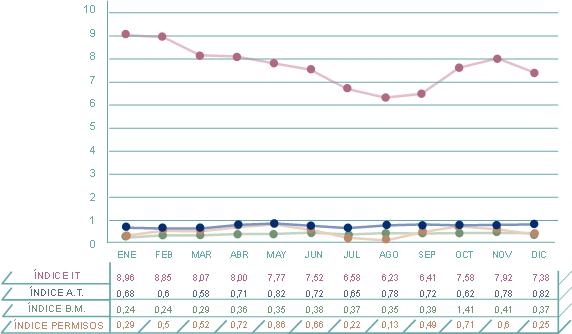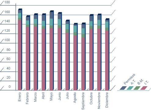| BAJA I. T. | B. MAT. | ACC. TRAB. | PERMISOS | TOTAL | ||||||