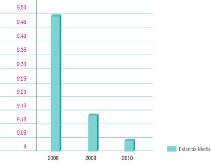| Años | Nº camas | Ingresos | %Ocupac. | Est.Media |