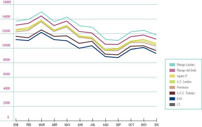 | IT | MATERN. | ACCIDENTE | PERMISOS | ACU. LACTA | AGOT IT | RIESGO EMB | RIESGO LACT | TOTAL | ||||||||||