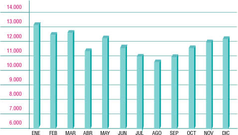 GRÁFICO EVOLUCIÓN MENSUAL DE URGENCIAS